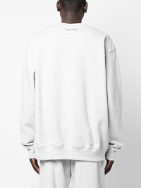 slogan-print cotton sweatshirt light grey cotton blend slogan print to the front logo print to the rear crew neck extra-long sleeves ribbed cuffs and hem When buying this unisex item, keep in mind that it is graded in standard men's sizing. Made in United States Composition Cotton 97%, Polyester 3% SIZE & FIT Model measurements Height 5 ft 11 in(1.8 m) Bust/Chest 31.49 in(80 cm) Hips 35.43 in(90 cm) Waist 24.4 in(62 cm) Measurement CHEST 50.39 in(128 cm) SLEEVE LENGTH 27.16 in(69 cm) Shoulder Width 23.22 in(59 cm) LENGTH 28.74 in(73 cm) FittingInformation This unisex piece is designed for an oversized fit whether you usually select women's or men's sizes The ribbed hem offers a close, comfortable fit Washing instructions Machine Wash