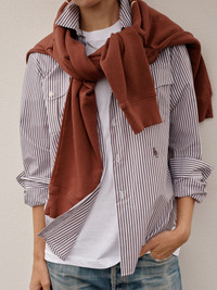 SRC Utility stripe-print cotton shirt Highlights - Brown/white - Cotton - Stripe print - Embroidered logo to the side - Spread collar - Front button fastening - Long sleeves - Buttoned cuffs - Curved hem - When buying this unisex item, keep in mind that it is graded in standard men's sizing. Imported Composition Cotton 100%