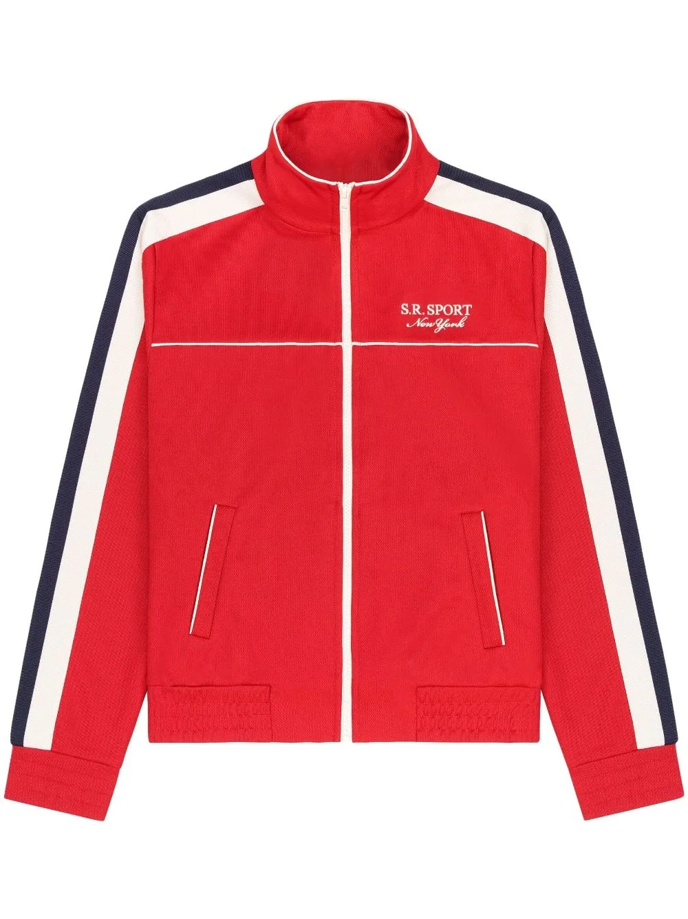 stripe-detail zip-up track jacket Highlights - Red/white/blue - Side stripe detailing - Embroidered logo at the chest - Stand-up collar - Front zip fastening - Long sleeves - Elasticated cuffs - Straight elasticated hem - When buying this unisex item, keep in mind that it is graded in standard men's sizing. Imported Composition Polyester 52%, Cotton 48% Washing instructions Read Manufacturer Guidelines