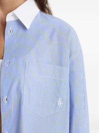 striped collared shirt Highlights - Navy blue - Striped - Chest patch pocket - Collared - Button fastening - Long sleeves Imported Composition Cotton 100% Washing instructions Read Manufacturer Guidelines