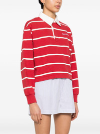 striped polo shirt Highlights - Brick red - Front button placket - Embroidered logo at the chest - Long sleeves - Ribbed cuffs Imported Composition Cotton 100% SIZE & FIT Model measurements Height 5 ft 9 in(1.76 m) Bust/Chest 31.88 in(81 cm) Hips 35.43 in(90 cm) Waist 24.8 in(63 cm) FittingInformation Designed for a relaxed fit, this piece allows for comfort and movement when worn Made from a midweight non-stretch fabric, this piece offers minimal elasticity when worn Measurement SLEEVE LENGTH 21.25 in(54 cm) LENGTH 18.5 in(47 cm) BUST 38.58 in(98 cm) Shoulder Width 16.92 in(43 cm) Washing instructions Machine Wash