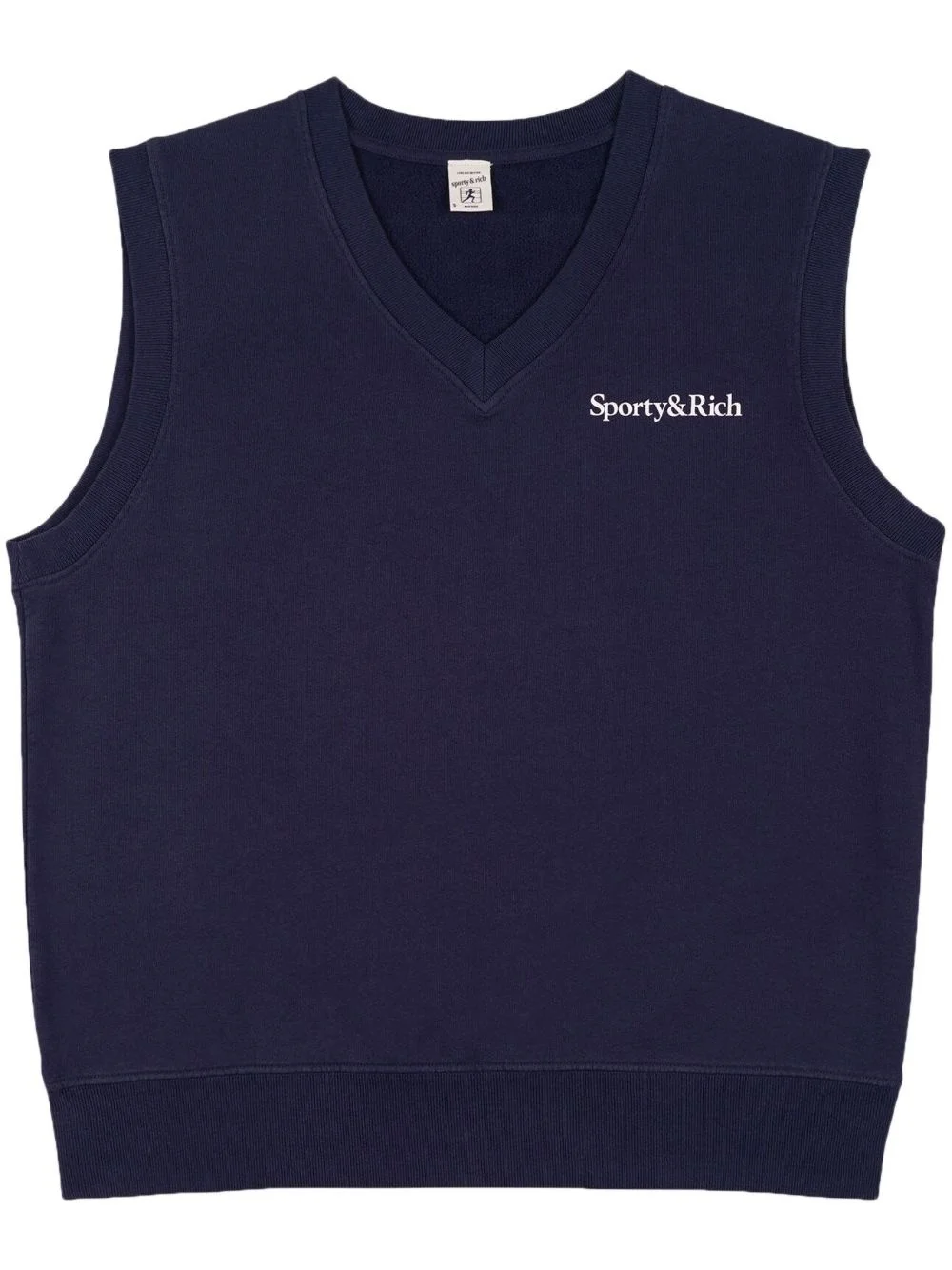 logo-print sleeveless sweatshirt Highlights - Navy blue - Cotton - Logo print at the chest - V-neck - Sleeveless - Ribbed hem - When buying this unisex item, keep in mind that it is graded in standard men's sizing. Imported Composition Cotton 100%