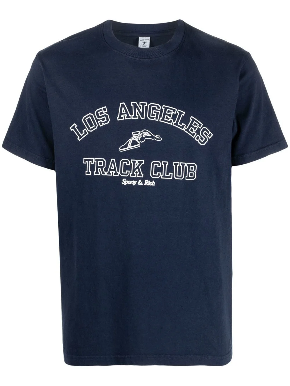 Track Club graphic-print T-shirt navy blue/white cotton jersey knit graphic print to the front logo print to the front crew neck short sleeves straight hem Made in United States Composition Cotton 100% SIZE & FIT Model measurements Height 6 ft 1 in(1.85 m) Bust/Chest 35.82 in(91 cm) Hips 37.79 in(96 cm) Waist 29.13 in(74 cm) FittingInformation This piece fits true to size. We recommend you get your regular size Cut for a relaxed fit Made with a mid-weight fabric