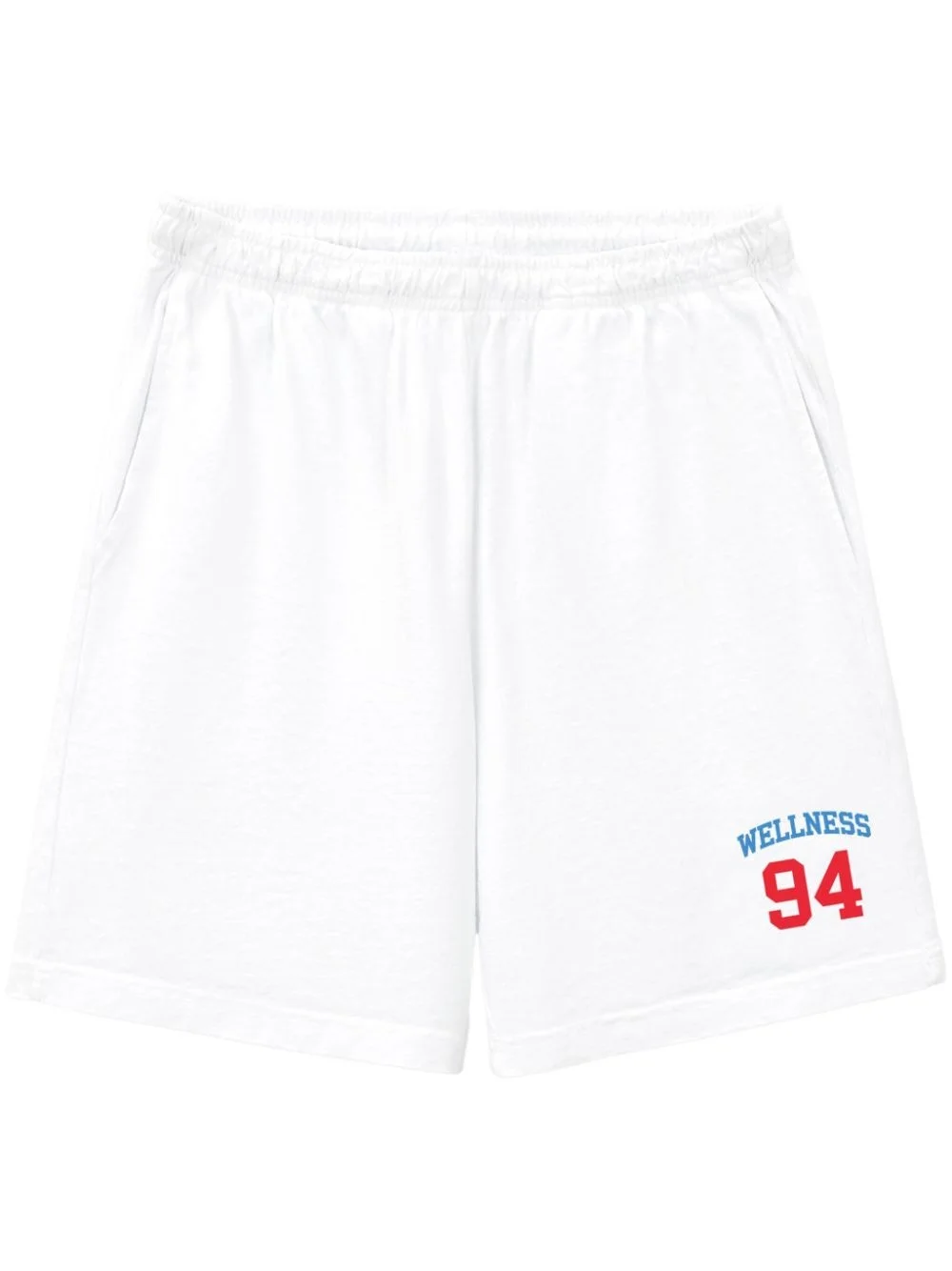 Wellness 94 cotton track shorts Highlights - White/multicolour - Cotton - Slogan print - Number print to the front - Elasticated waistband - Two side inset pockets - Rear patch pocket - Straight leg - Above-knee length - When buying this unisex item, keep in mind that it is graded in standard men's sizing. Made in United States Composition Cotton 100%