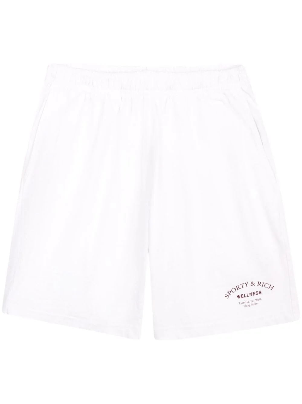Wellness Studio cotton shorts Highlights - Optical white - Cotton - Jersey knit - Logo print to the front - Elasticated waistband - Rear patch pocket - Straight hem - When buying this unisex item, keep in mind that it is graded in standard men's sizing. Made in United States Composition Cotton 100% Washing instructions Machine Wash