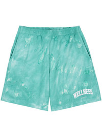 Wellness tie-dye shorts Highlights - Green/white - Cotton - Tie-dye pattern - Slogan print to the front - Elasticated waistband - Straight leg - Two side inset pockets - Rear patch pocket - Straight hem - When buying this unisex item, keep in mind that it is graded in standard men's sizing. Made in United States Composition Cotton 100%