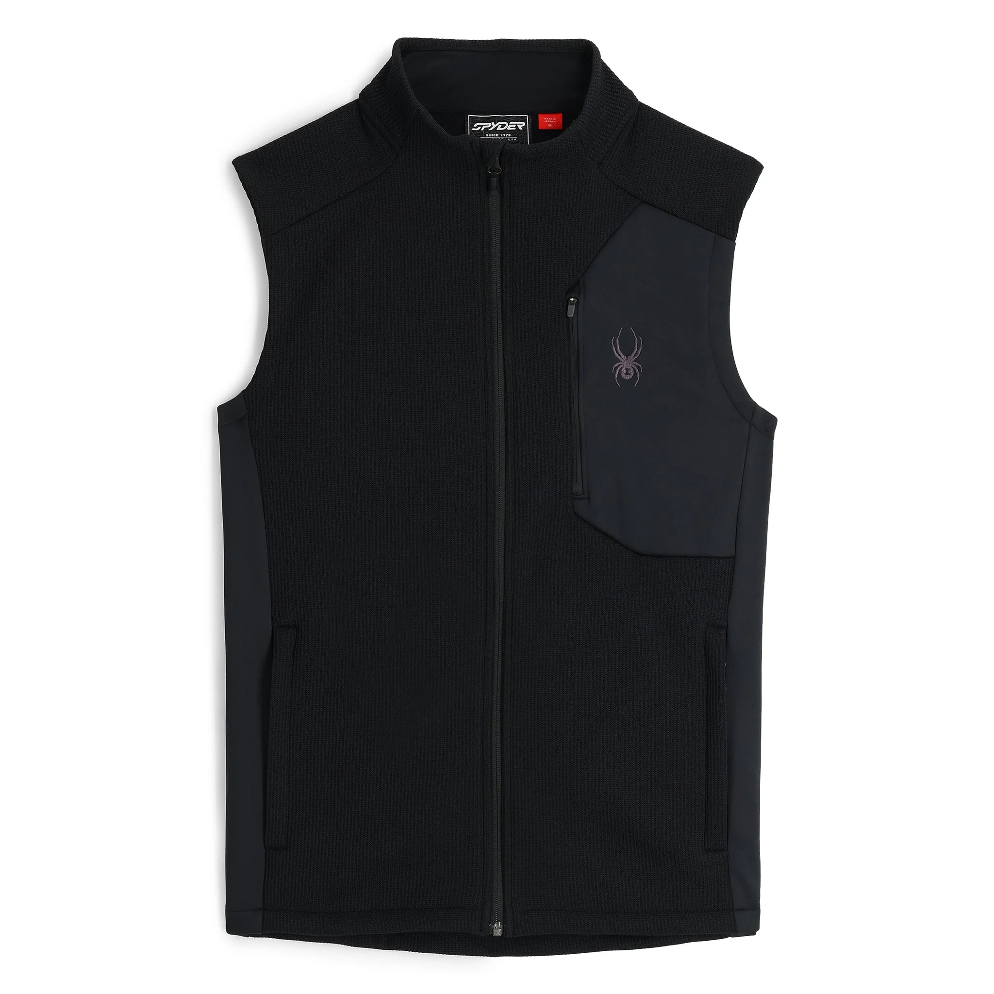 The Bandit vest blends a classic alpine sweater style with a modern twist. A lightweight polyester sweater knit bonded to anti-pill fleece, stretch side panels, and a sleek chest pocket adds functionality to this versatile layer that is great for a day on the mountain. - 38A485334_BLK