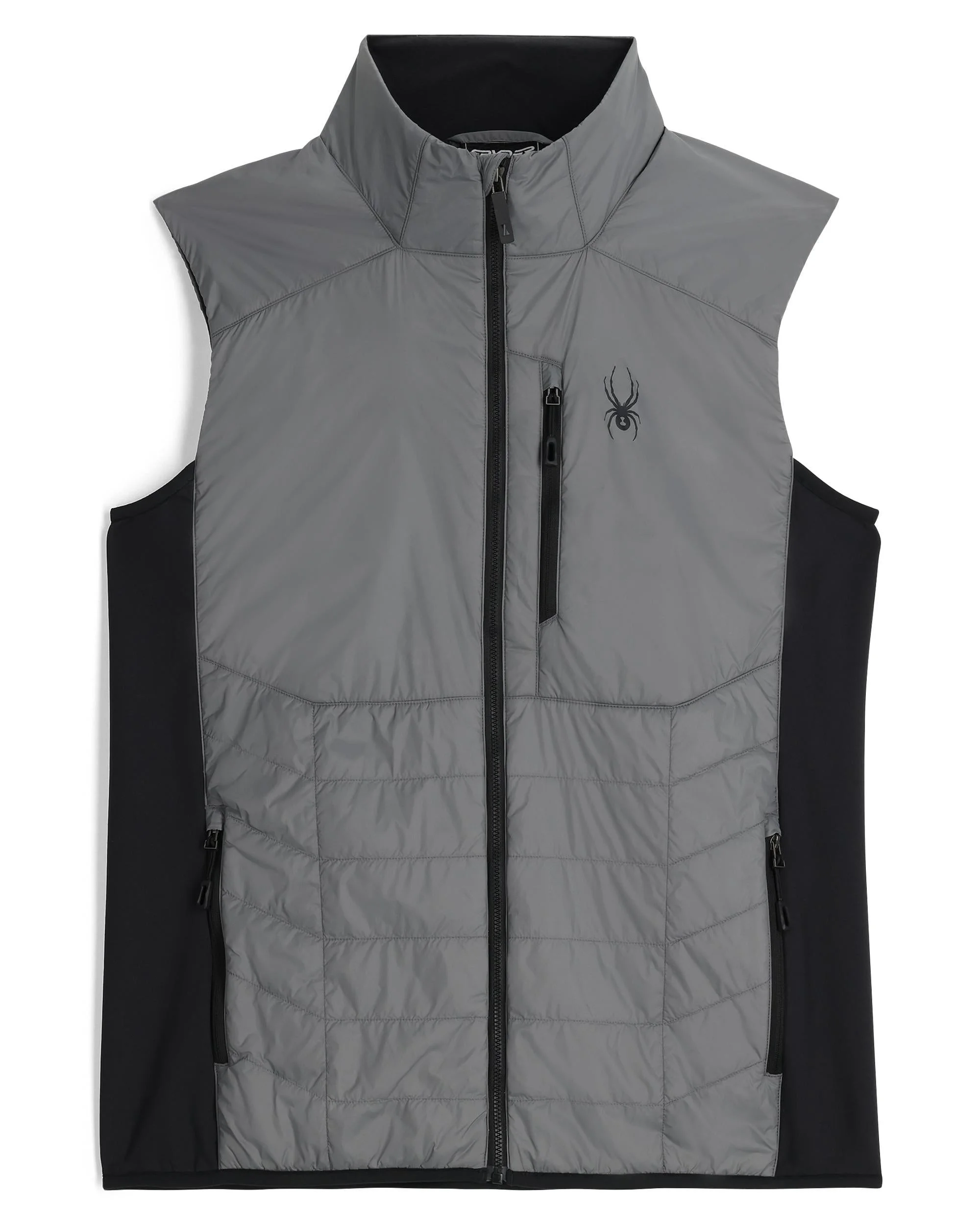 Featuring 60 grams of lightweight Sorona® insulation, the Glissade hybrid vest is a versatile layer that can be worn alone or as part of a ski kit to add warmth and functionality. Downproof polyester coated in Durable Water Repellent seals out moisture, while a stretch fleece provides movement and ventilation where you need it. - 100% RECYCLED NYLON (POLYAMIDE) - Recycled Downproof Polyester Plain Weave with DWR - Sorona® Insulation (60g) - 88% Recycled Polyester, 12% Elastane Stretch Terry Fleece with Brushed Back in side panels and underarm for ventilation and full range of movement - Custom Spyder web embossed interior lining - Components are produced without PFAS chemicals - YKK® center front zipper - YKK® chest pocket zippers - YKK® hand pocket zippers - Binding at the hood, cuffs and bottom hem - CB Length: Size M: 26 1/2" - Fit: Standard - 38A063501_STM
