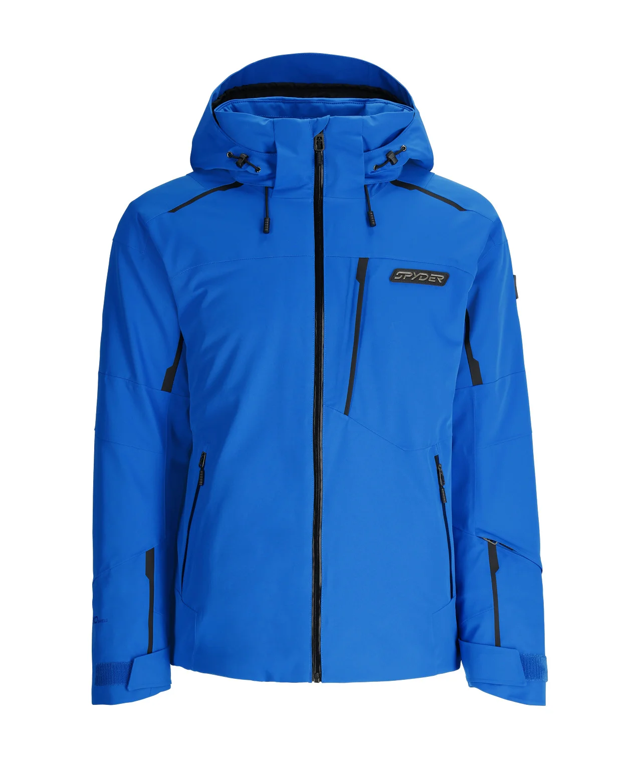 The Leader has been a pillar in the Spyder line for decades. This jacket features 4-way stretch EXO SHIELD 30K/20K fabric, which provides high-level protection and functionality. It's warm and waterproof with 100 grams of PrimaLoft® Black ECO insulation and sealed seams. The Leader jacket excels on the slopes with thoughtful details like a removable helmet-compatible hood, YKK® AquaGuard® zippers, and underarm ventilation. - 100% RECYCLED POLYESTER - EXO SHIELD 30K – 100% Recycled Polyester 4-Way Stretch Plain Weave with 30K/20K Laminate and DWR - PrimaLoft® Black ECO Insulation (100g) - Components are produced without PFAS chemicals - All seams sealed - Targeted interior stretch panels for full range of movement - Removable helmet compatible hood with adjustable opening - YKK® AquaGuard® center front zipper - YKK® AquaGuard® hand pocket zippers - YKK® chest pocket zipper - Underarm ventilation system with YKK® zippers - YKK® data card pocket zipper - Removable powder skirt with snap-back feature - Spacer mesh padding at shoulders - YKK® reverse coil interior pocket zipper - Mesh goggle pocket - Chamois lens wipe - Adjustable cuff tabs - Interior stretch cuffs and thumbholes - Drawcord adjustable hem - CB Length: Size M: 29 1/2" - Fit: Standard - 38SA073514_CBT4