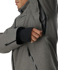 The Leader has been a pillar in the Spyder line for decades. This jacket features 4-way stretch EXO SHIELD 30K/20K fabric, which provides high-level protection and functionality. It's warm and waterproof with 100 grams of PrimaLoft® Black ECO insulation and sealed seams. The Leader jacket excels on the slopes with thoughtful details like a removable helmet-compatible hood, YKK® AquaGuard® zippers, and underarm ventilation. - 100% RECYCLED POLYESTER - EXO SHIELD 30K – 100% Recycled Polyester 4-Way Stretch Plain Weave with 30K/20K Laminate and DWR - PrimaLoft® Black ECO Insulation (100g) - Components are produced without PFAS chemicals - All seams sealed - Targeted interior stretch panels for full range of movement - Removable helmet compatible hood with adjustable opening - YKK® AquaGuard® center front zipper - YKK® AquaGuard® hand pocket zippers - YKK® chest pocket zipper - Underarm ventilation system with YKK® zippers - YKK® data card pocket zipper - Removable powder skirt with snap-back feature - Spacer mesh padding at shoulders - YKK® reverse coil interior pocket zipper - Mesh goggle pocket - Chamois lens wipe - Adjustable cuff tabs - Interior stretch cuffs and thumbholes - Drawcord adjustable hem - CB Length: Size M: 29 1/2" - Fit: Standard - 38SA073514_SMM2