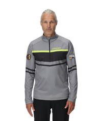 The Legacy 1/2 zip t-neck, made from 83% polyester and 17% elastane stretch knit fabric, offers wicking properties alongside UPF 50+ sun protection. It features a YKK® center front zipper with a double-layer gusset behind it for added wind protection. It is enhanced with custom Spyder seasonal graphics and an interior locker loop. - 83% Polyester 17% Elastane Stretch Knit Wicking & UPF 50+ - YKK® center front zipper - Custom Spyder seasonal graphics - Custom interior locker loop - CB Length: Size M: 27 1/2" - Fit: Fitted - 83% RECYCLED POLYESTER / 17% ELASTANE - 38A013506_STM