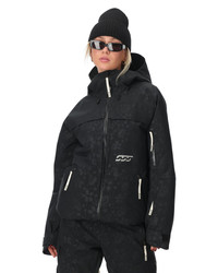 The Society Lift jacket is your new daily driver. It has the same features as our inline Lift Jacket with some added touches for the girls. 4-way stretch EXO SHIELD 20K fabric, targeted Sorona® insulation (80 grams), and YKK® AquaGuard® zippers, boasting many premium Spyder features. Targeted insulation zones to keep your cold spots warm and let your hot tots breathe. The custom embossed tonal print was hand drawn by Elsa Grace and brings a subtle pop to a timeless black on black outfit. - 100% RECYCLED POLYESTER - EXO SHIELD 20K – Recycled Polyester 4-Way Stretch Plain Weave with 20K/20K Laminate and DWR - Sorona® Insulation (80g) - Components are produced without PFAS chemicals - Body mapped insulation for targeted warmth - Targeted interior stretch panels for full range of movement - Fixed helmet compatible hood with adjustable opening - YKK® Vislon® Aquaguard center front zipper - YKK® AquaGuard® hand pocket zippers - YKK® AquaGuard® upper sleeve pocket zipper - YKK® chest pocket zippers - Data card pocket with YKK® zipper - Underarm ventilation system with YKK® zippers - Fixed powder skirt with snap-back feature - Mesh goggle pocket - Chamois lens wipe - Adjustable cuff tabs - Interior stretch cuffs and thumbholes - Drawcord adjustable hem - CB Length: Size M: 29 1/2" - Fit: Relaxed - Custom collab emboss print - 38SA073550_SSB