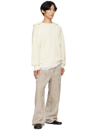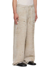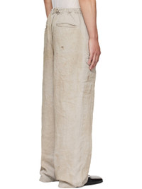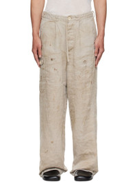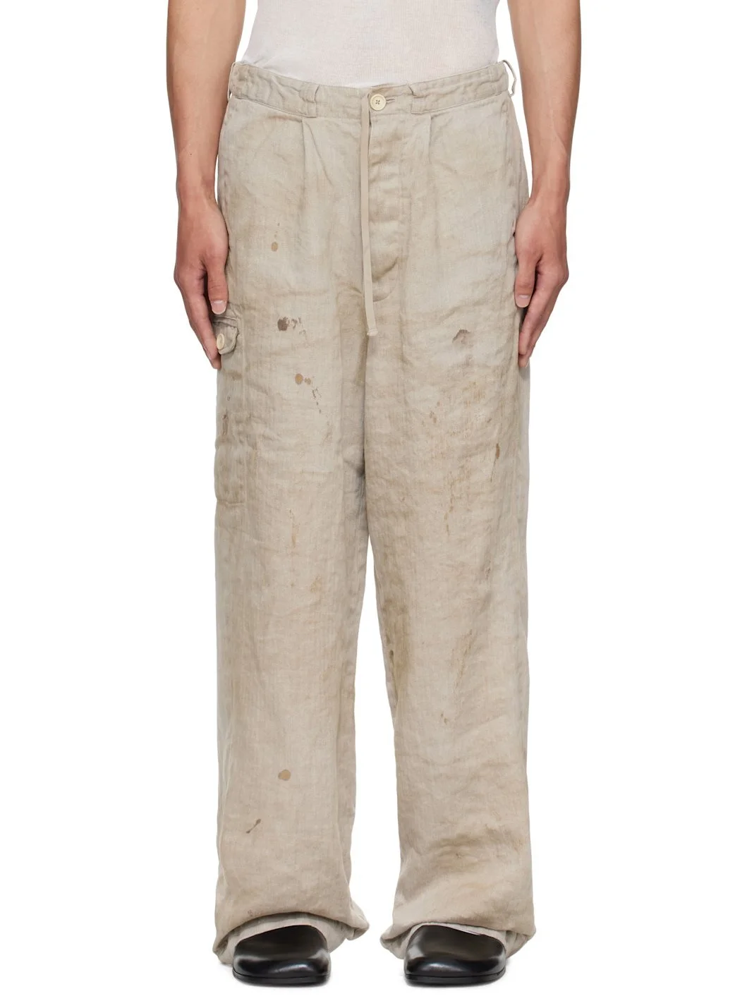 Heavyweight linen herringbone trousers. · Smudging and fading throughout · Concealed drawstring at elasticized waistband · Belt loops · Four-pocket styling · Zip fly · Flap pocket at outseam Supplier color: Natural 100% linen. Made in Japan 252996M191005