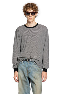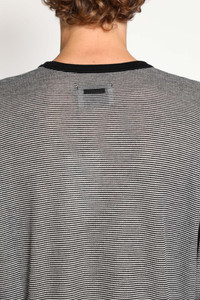 DESCRIPTION - Black and white - Striped Super120 s Washable Wool Jersey - Round neck - Dropped shoulders - Long sleeves - Ribbed cuffs - Relaxed fit DETAILS - Made in: Japan - Composition: 100% Wool - Model code: ST1327 MULTI - Item ID: 9837578715478