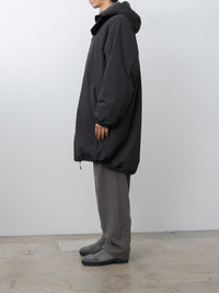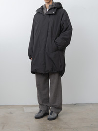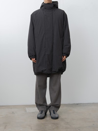From Ssstein, an oversized padded coat inspired by the PCU Level 7 Monster Parka—the highest insulation layer developed for U.S. special forces. Crafted from a durable OLMETEX fabric blend and lightly padded with 60 g fill, it offers warmth without the weight for season-spanning wear. Details include full lining, two-way zip front, side pockets, drawcord hem for an adjustable fit, elasticated cuffs and a fixed hood. - Made in Japan - 46% Polyester, 33% Nylon, 21% Cotton - Available in Black, Taupe - The model is 6'1"/185cm and wears size M