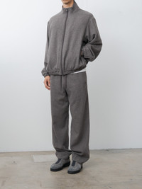 This zip jacket is crafted from a luxurious, lightweight wool cashmere flannel that combines the soft, fleece-like touch of cashmere with the natural fullness and elasticity of extra fine lambswool. Details include a high neck, 2-way zip, side pockets, and subtle gathers at the yoke and sleeves. - Made in Japan - 80% Wool, 20% Cashmere - Available in Grey Brown - The model is 6'1"/185cm and wears size M