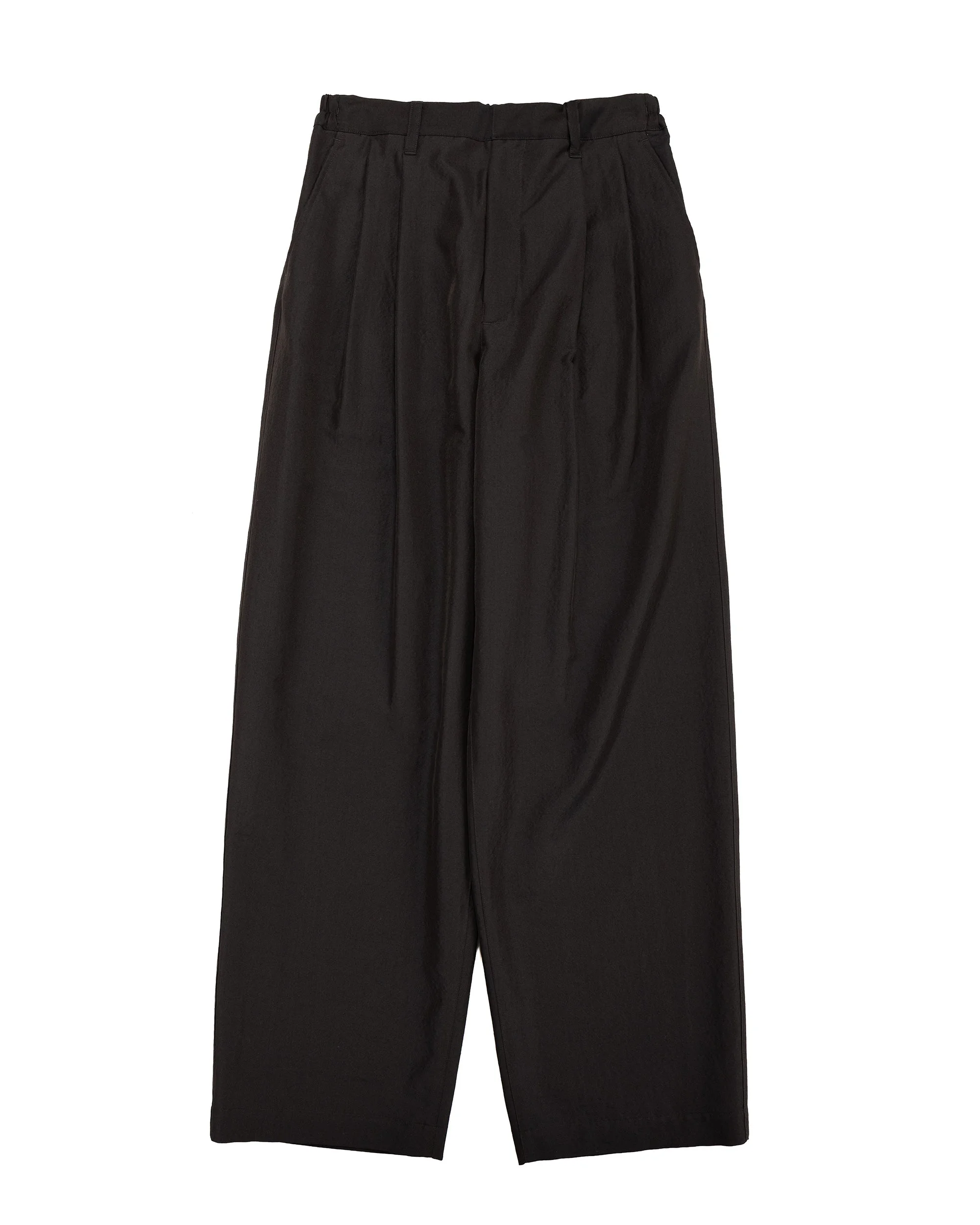 Just the thought of wool blending with silk makes me want to dive into this soft, gentle dream. With silk in the warp and wool in the weft, the fabric offers the rich texture of wool while showcasing the luxury of silk. I’d love to sleep in these, but I’m worried my cat will claim them for his own stash. DETAILS - Wool silk blend - Button waist closure with rear elasticated waist - Double pleated front - Front slash pockets & rear double welt pockets - 73% wool 27% silk - Made in Japan - Model is 6’2” (189cm), 160lbs (73kg) and wearing M