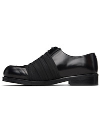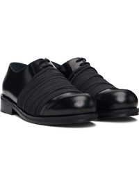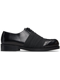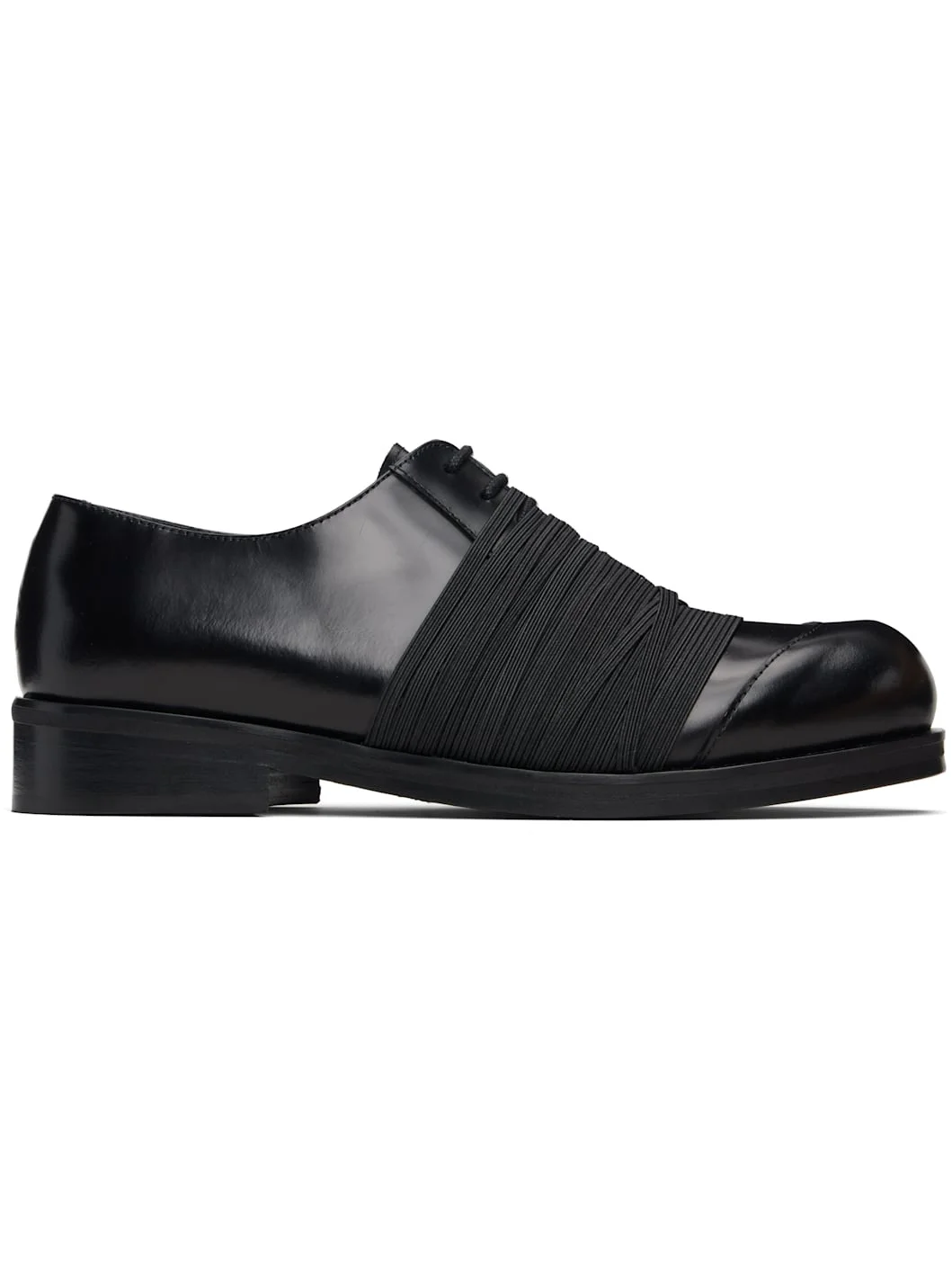 Buffed leather derbys. · Cap toe · Elasticized straps at vamp · Lace-up closure · Stacked leather heel with rubber injection · Leather sole Supplier color: Black Upper: leather. Sole: leather, rubber. Made in Portugal 252300M225007