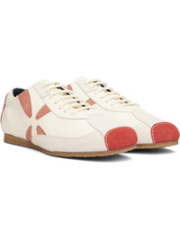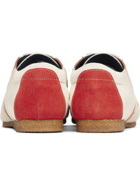 Low-top suede and buffed leather sneakers. · Square toe · Lace-up closure · Padded collar · Graphic cutouts at sides · Buffed leather lining · Crepe-rubber sole Supplier color: White/White Upper: leather. Sole: rubber. Made in Portugal 252300M237001