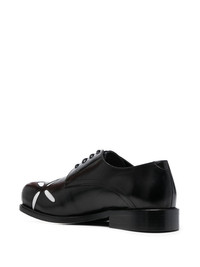 Slashed square-toe Derby shoes Slashed square-toe Derby shoes from STEFAN COOKE featuring black/white, leather, square toe, debossed detailing, front lace-up fastening, leather sole and panelled design. Imported Composition Outer: Bos Taurus 100% Lining: Bos Taurus 100% Sole: Leather 100% SIZE & FIT Measurement HEEL 0.98 in(2.5 cm) Sole height 0.39 in(1 cm)