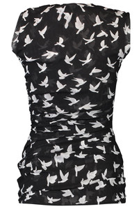 DETAILS AND INSIGHT Stella Mccartney dove print sleeveless top in black/white. 100% Polyamide Dry Clean Made In Portugal Style 6J03113SPZ89-1000