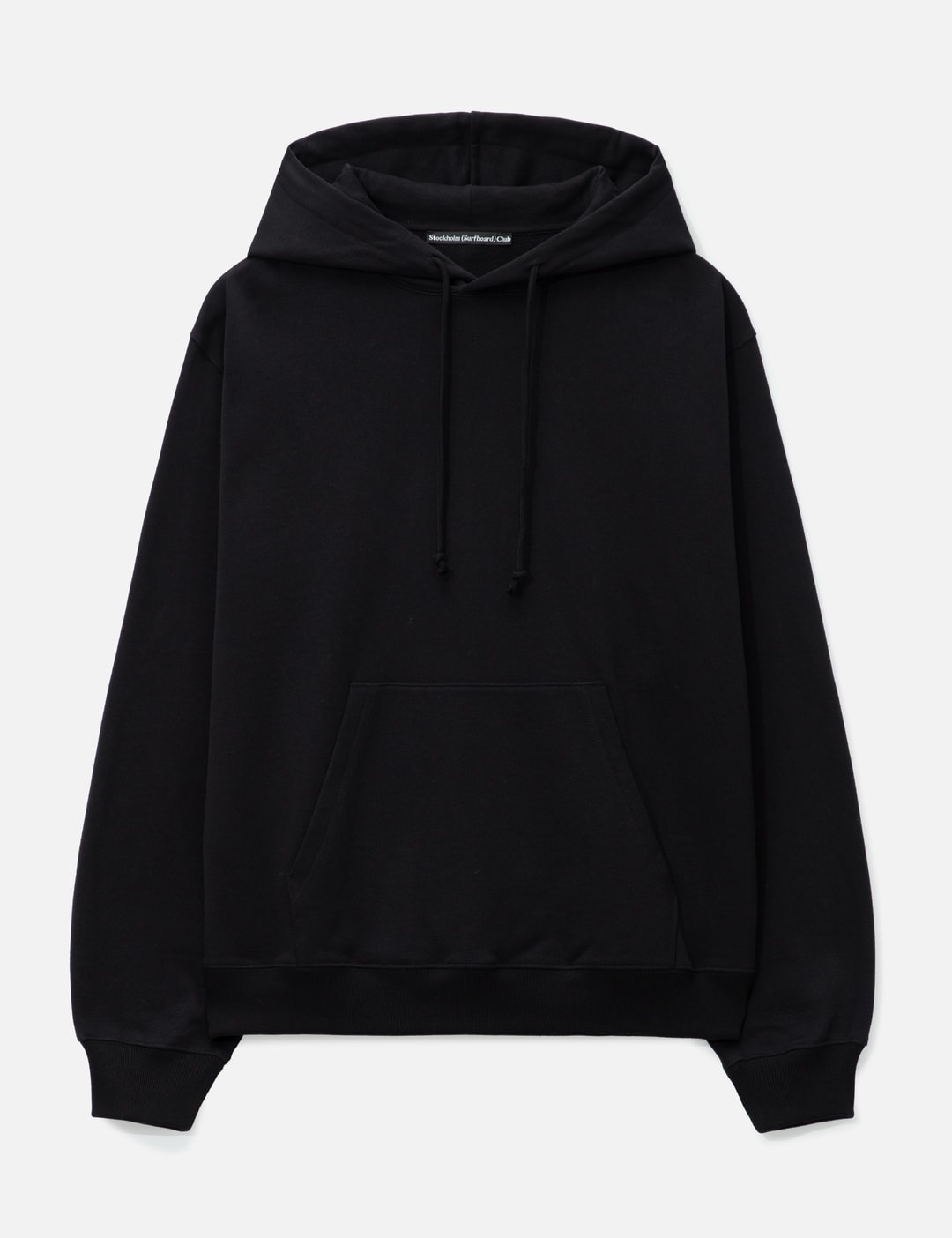 - STOCKHOLM SURFBOARD CLUB - Bjorn Hoodie - Heavyweight organic cotton fabric - Drawcord hood - Pouch pocket - Ribbed cuffs and hem - Logo print at rear - Brushed lining - Color: Black - Material: 100% Organic Cotton - See more Hoodies and Clothing SIZING - Model wears size M - Model measures: Height 186cm, Chest 34”/86cm, Waist 28”/71cm, Hip 36”/91cm