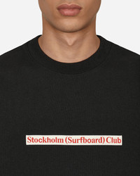 Stockholm (Surfboard) Club Logo Crewneck Sweatshirt Black - 52% Cotton, 48% Recycled Cotton - Ribbed Crewneck, Cuffs and Hem - Woven Logo Patch at Front - Style Code: MU1B90 001 SIZE & FIT Model is 6ft 1in/1.86m with 35"/90cm chest and wears size M. Measures (Size M): 50cm Shoulders, 55cm Chest, 65cm Sleeve, 66cm Length, 36cm Hem.