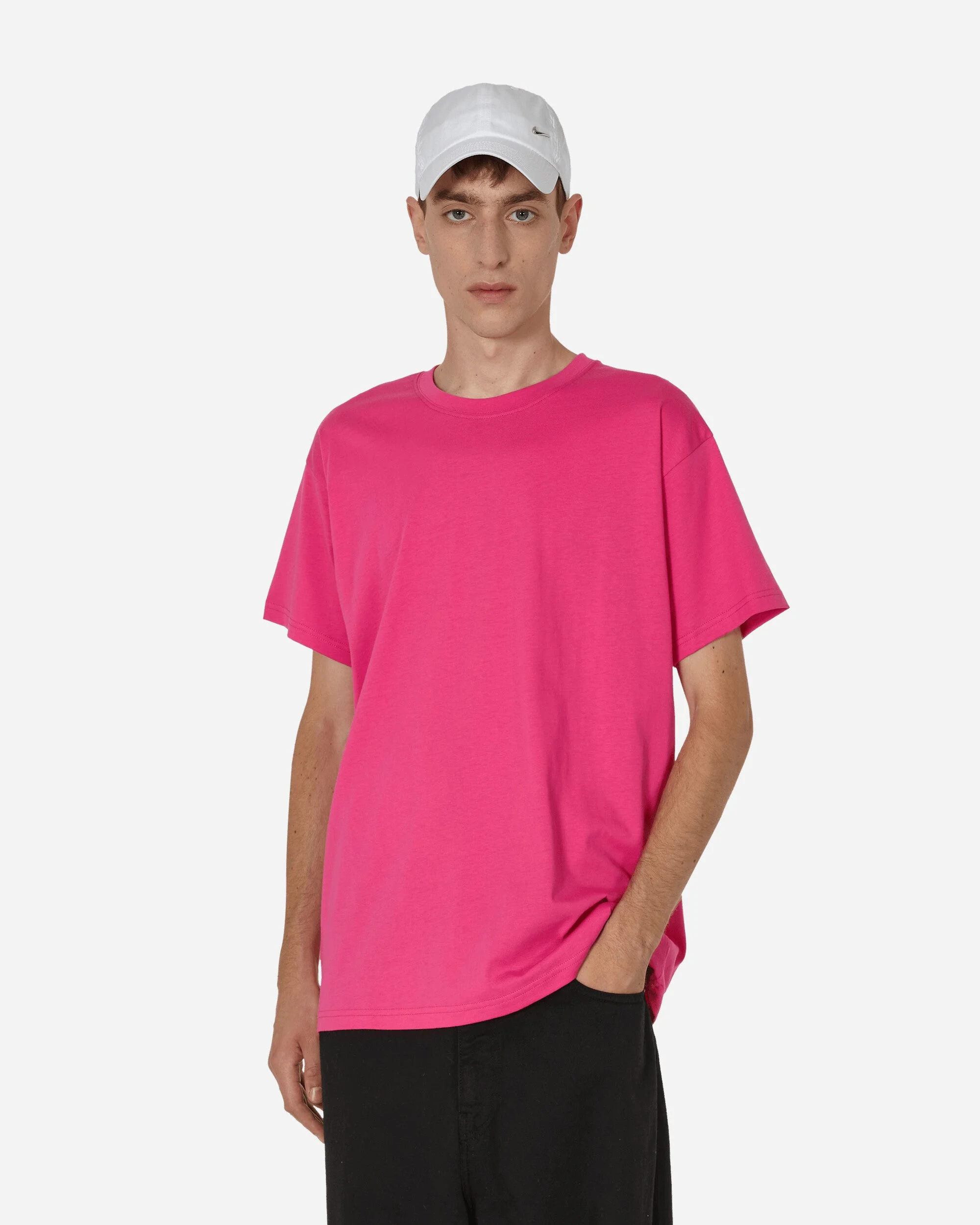 Stockholm (Surfboard) Club Logo T-Shirt Fluo Pink As the brand's name suggests, Stockholm (Surfboard) Club is inspired by surf culture for collections somewhere between sportswear and tailoring. Its logo t-shirt embodies minimalist aesthetics, as an essential item for your daily routine. - 100% Organic Cotton - Regular Fit - Ribbed Crewneck - Logo Printed at Back - Style Code: AU1P30 001 SIZE & FIT Model is 6ft 2in/1.87m with 32"/82cm chest and wears size L. Measures (Size L): 50cm Shoulders, 55cm Chest, 20cm Sleeve, 72cm Length, 55cm Hem.