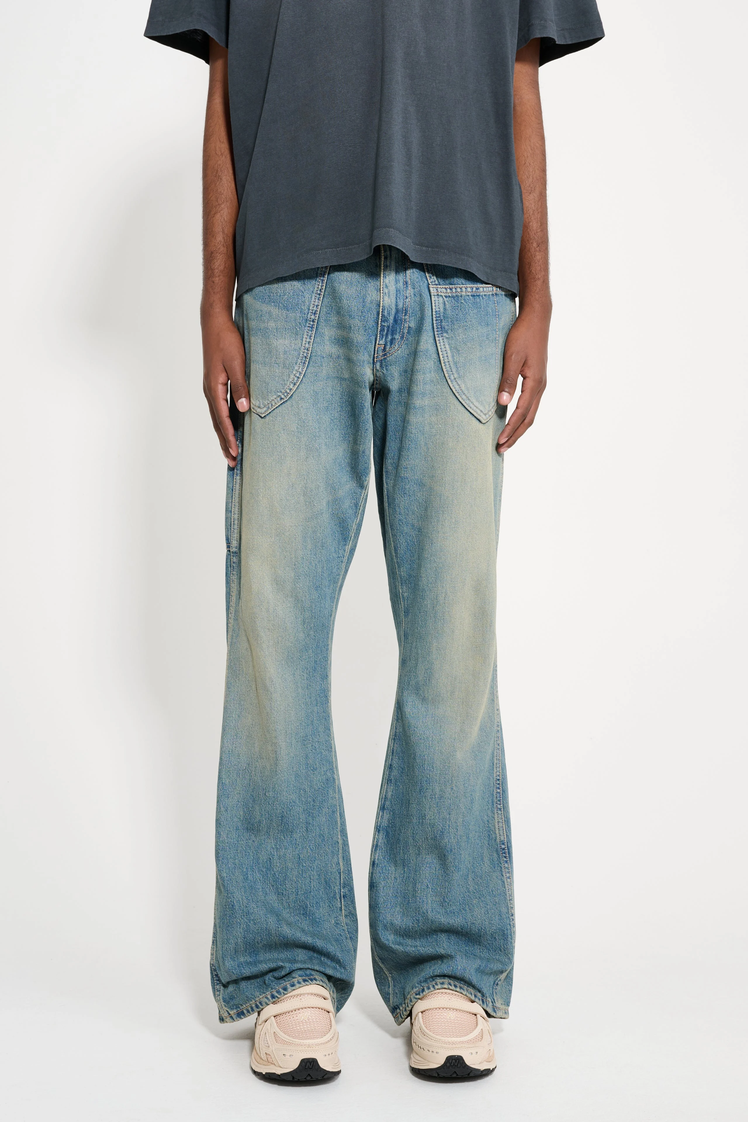 Jeans from Stockholm Surfboard Club. Made in Italy from rigid Japanese denim with a vintage wash. Work-style design with mid waist, exaggerated bootcut, work pockets, brass rivets, and zipper fly. Features an embroidered back pocket. Details Washed blue denim. Made in Italy from 100% cotton.ART. NO: U5000215 Size & fit Model wears a size 31 and measures 188 cm with a 72 cm waist.