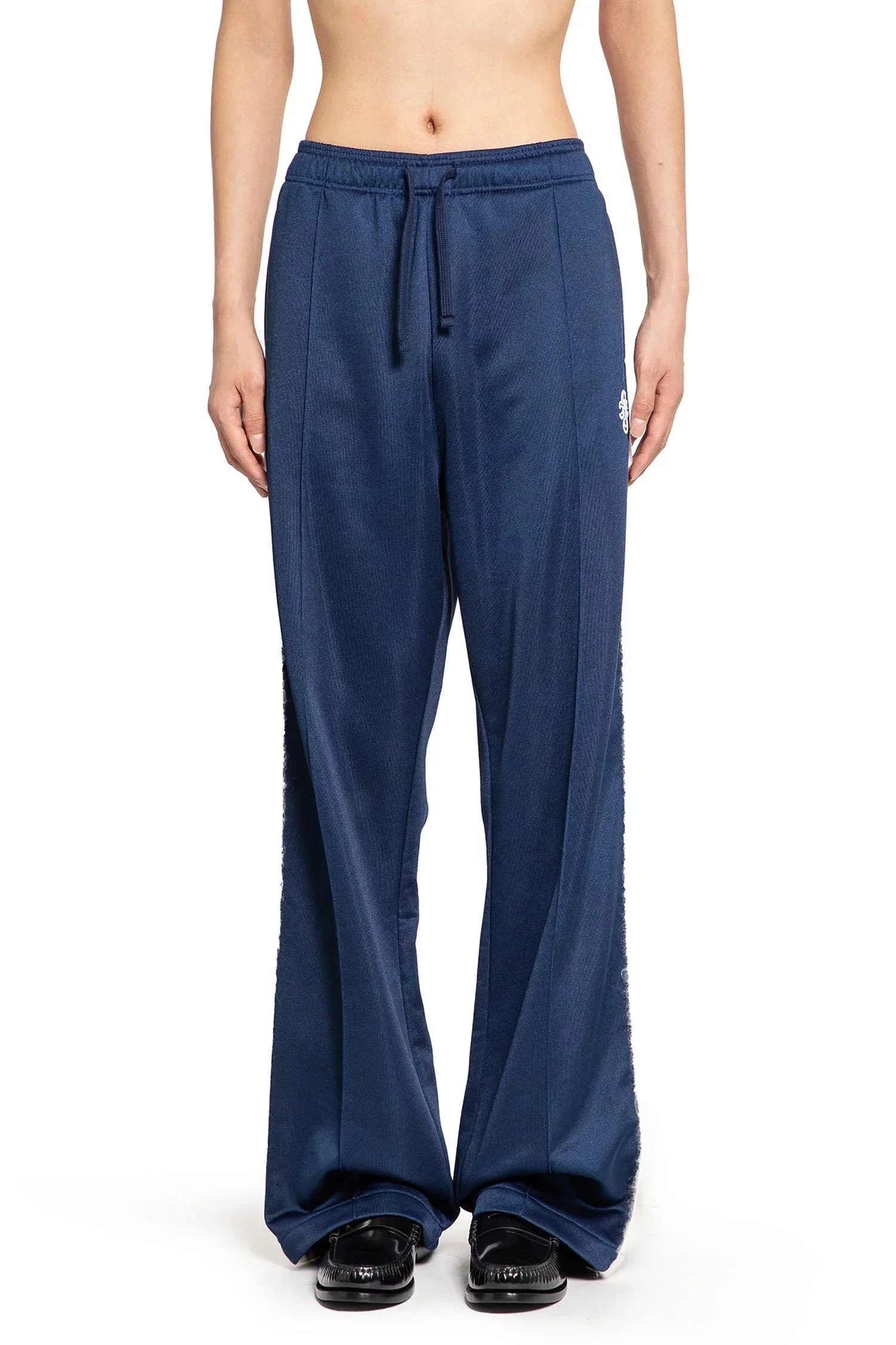 DESCRIPTION - Navy - Cotton nylon jersey - Elastic waistband with drawstrings - Front embroidered monogram - Side pockets - Side fluffy knit stripes - Bootcut - Floor length DETAILS - Made in: Portugal - Composition: 63% Polyester 37% Cotton - Model code: U5000135 N01 - Item ID: 9420040995158
