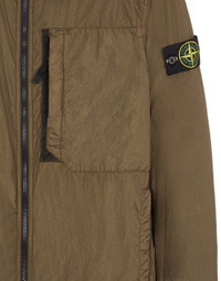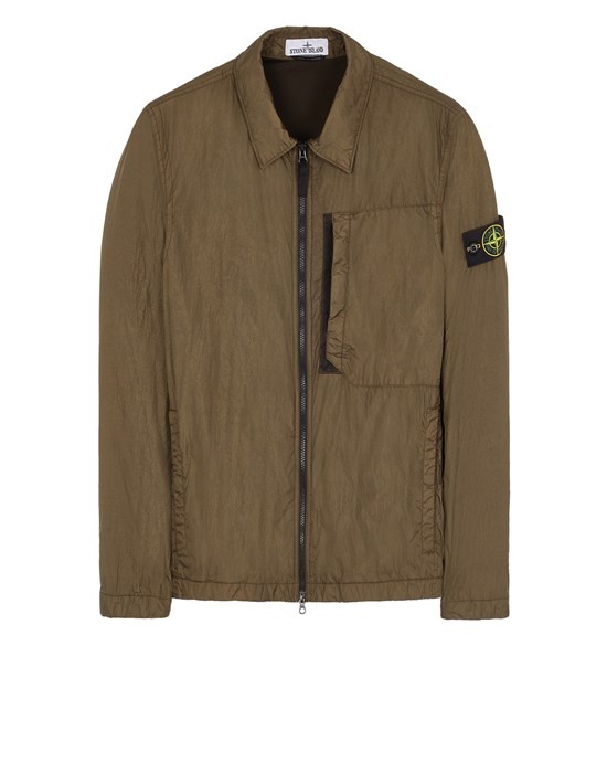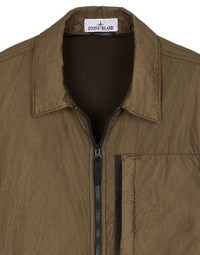 FABRIC RESEARCH AND TREATMENT GARMENT DYED CRINKLE REPS RECYCLED NYLON: Overshirt in made in a 100% recycled light nylon rep with an ultra-tight weaving construction. The resin coating of its inner face makes it wind resistant and mildly water resistant. Due to the resin treating of the material, the color penetrates unevenly into the material, lending a crinkle aspect to the surface. Lined in nylon jersey. STYLE Regular fit. One large pocket on chest with standing entrance on nylon tape and hidden zipper fastening. On seam hand pockets with hidden snap fastening. Stone Island badge on the left sleeve. Tightening snap at cuffs on elasticized band. Two-way zipper fastening. COMPOSITION GARMENT: 100% Polyamide / Nylon - Coating: Polyurethane resin GARMENT DETAILS: 100% Polyamide / Nylon - Coating: Polyurethane resin Lining: 100% Polyamide / Nylon