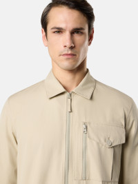 Overshirt in a cotton canvas made from the finest premium cotton fibers that provide a natural weather barrier that is windproof, breathable, and durable. FABRIC RESEARCH AND TREATMENT Ghost pieces, derived from the concept of camouflage, are totally monochromatic. Even the Stone Island badge is created in a special monocolor version to blend in with the garment. Overshirt made of a tightly woven cotton canvas fabric using the finest, long-staple premium organic cotton fibers. The combination of dense weaving and swelling properties of the fiber when wet provides an excellent weather barrier with no need of extra coating or lamination. It is entirely natural, offering a unique level of comfort and touch. It is windproof, breathable and very durable. STYLE AND FIT Two chest pockets on left side; one bellows pocket with flap and button fastening; the other with vertical entrance and zipper fastening. On-seam hand pockets. Inner pocket with top entrance. Stone Island Ghost badge on the left sleeve. Tightening snap at cuffs. Two-way fastening. Regular fit. COMPOSITION AND CARE 100% Cotton