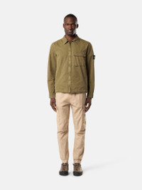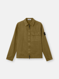 Overshirt in brushed organic cotton canvas, featuring a dual chest pocket and two-way zipper. Garment dyed with the “OLD” treatment for a slightly worn appearance. FABRIC RESEARCH AND TREATMENT Overshirt in brushed organic cotton canvas. Garment dyed with the “OLD” treatment, an exclusive dyeing treatment and subsequent fading on the finished garment for a slightly worn and three-dimensional appearance. STYLE AND FIT Dual-compartment bellows chest pocket with flap and concealed double snap. Stone Island badge on left sleeve. Snap at cuffs. Concealed two-way zipper fastening. Regular fit. COMPOSITION AND CARE 100% Cotton