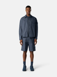 Overshirt in all-weather cotton canvas that is windproof and breathable, featuring multiple pockets, adjustable snap cuffs, and a two-way zipper fastening. FABRIC RESEARCH AND TREATMENT Ghost pieces, derived from the concept of camouflage, are totally monochromatic. Even the Stone Island badge is created in a special monocolor version to blend in with the garment. Overshirt made from a tightly woven organic cotton canvas using ultra-fine long fibers. The combination of dense weaving structure and the swelling properties of the fibers when wet provides an excellent weather barrier without the need for additional coating or lamination. It is entirely natural, offering a unique level of comfort. It is windproof, breathable, and extremely durable. STYLE AND FIT Patch chest pocket with triangular flap and snap, overlapping smaller pocket, and pleat detail. Vertical welt hand pockets. Internal vertical chest pocket with external stitched outline and top-entry hand pockets. Back yoke with internal reinforcement. Stone Island Ghost badge on left sleeve. Adjustable cuffs with snap. Two-way zipper fastening. Regular fit. COMPOSITION AND CARE 100% Cotton