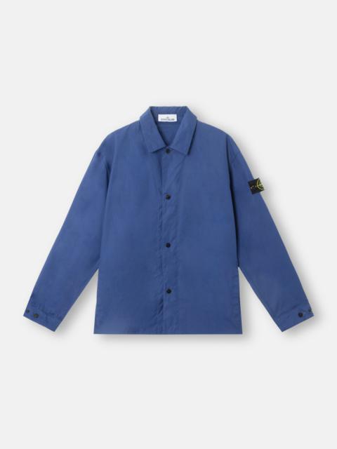 Overshirt made from an ultra-tightly woven Supima® cotton canvas whose high density makes it an excellent all-weather barrier, featuring hand pockets and snap fastening. FABRIC RESEARCH AND TREATMENT Overshirt made of an ultra-tightly woven Supima® cotton canvas. Supima® - Superior Pima - is a certificate guaranteeing the U.S. origin of Pima cottons. This is the noblest species among cottons, due to the greater length, uniformity and strength of the fibers. The density of the yarns in the construction makes it an excellent all-weather barrier. The fabric is dyed with non-aqueous dyeing technology, an innovative system that reduces water consumption by 89%, energy consumption by 73%, and CO2 emissions by 50%, compared to typical water-based dyeing methods. STYLE AND FIT Standing hand pockets. Stone Island badge on the left sleeve. Adjustable snap at cuffs. Snap-button fastening. Comfort fit. COMPOSITION AND CARE 100% Cotton