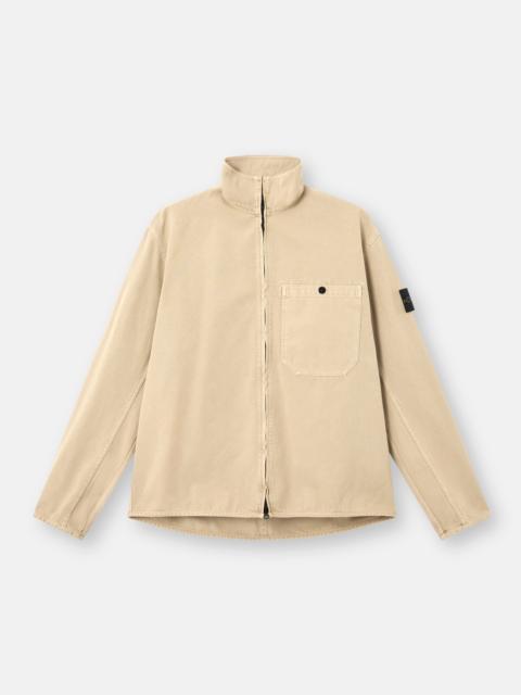 Overshirt in organic panama cotton, featuring a chest pocket, adjustable cuffs, and two-way zipper. Garment dyed with the “OLD” treatment for a slightly worn appearance. FABRIC RESEARCH AND TREATMENT Overshirt in organic panama cotton. Garment dyed with the “OLD” treatment, an exclusive dyeing treatment and subsequent fading on the finished garment for a slightly worn and three-dimensional appearance. STYLE AND FIT Patch chest pocket with snap. Stone Island badge on left sleeve. Adjustable cuffs with snap. Two-way zipper fastening. Comfort fit. COMPOSITION AND CARE 100% Cotton