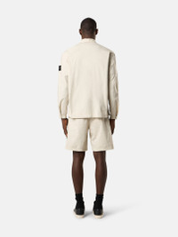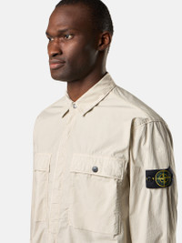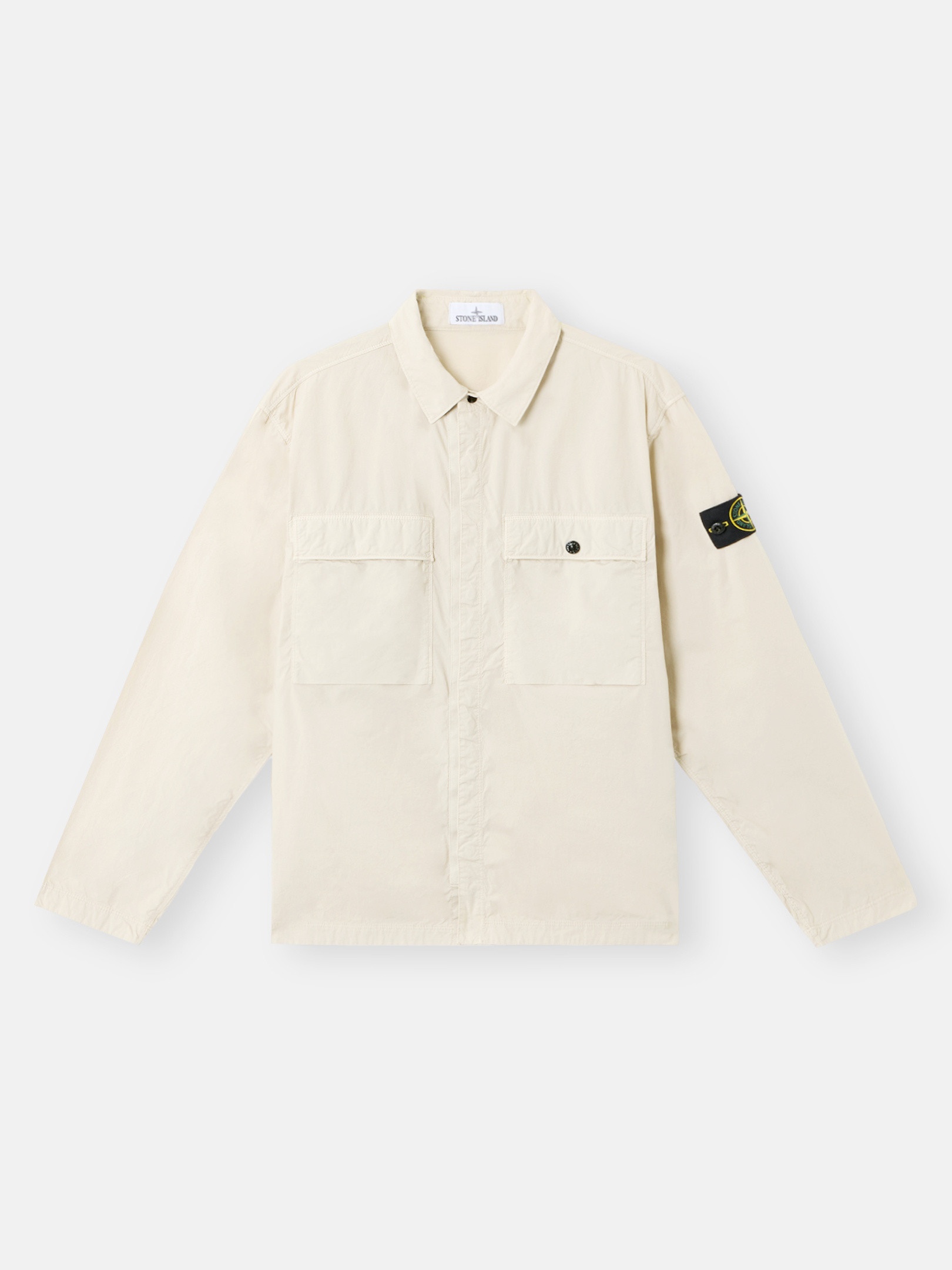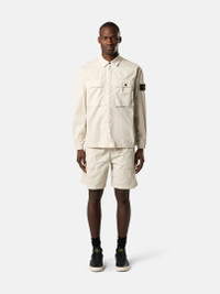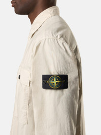Overshirt made from a light stretch cotton tela featuring chest pockets, adjustable cuffs, and a hidden snap fastening. Garment dyed. FABRIC RESEARCH AND TREATMENT Overshirt in light stretch cotton tela. Garment dyed. STYLE AND FIT Two patch bellows chest pockets, with fixed flap and snap fastening. Stone Island badge on the left sleeve. Tightening snap at cuffs. Hidden snap fastening on cotton tape. Comfort fit. COMPOSITION AND CARE 97% Cotton 3% Elastane / Spandex