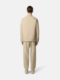 Overshirt in a carded wool nylon flannel with a chest pocket, internal pocket, snap cuffs, snap fastening, and nylon lining. FABRIC RESEARCH AND TREATMENT Ghost pieces, derived from the concept of camouflage, are totally monochromatic. Even the Stone Island badge is created in a special monocolor version to blend in with the garment. Overshirt made of a carded wool and nylon flannel. Nylon lining. STYLE AND FIT Patch pocket on left chest with snaps under flap. Internal standing pocket with snap that is visible on the outside. Yoke on back. Stone Island Ghost badge on left sleeve. Snap at cuffs. Snap fastening. Comfort fit. COMPOSITION AND CARE External Fabric: 80% Virgin Wool 20% Polyamide / Nylon. Lining: 100% Polyamide / Nylon