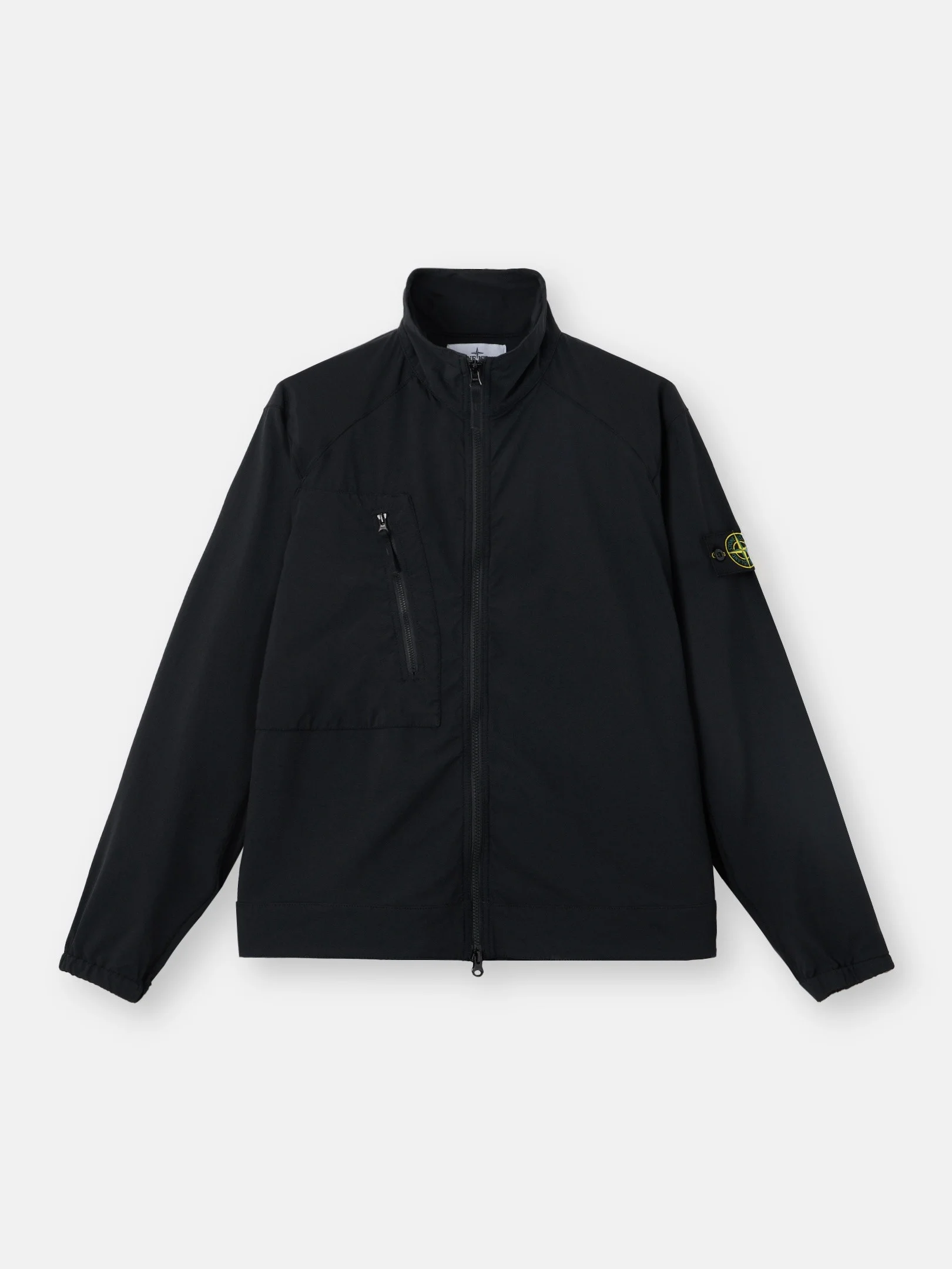 Overshirt in stretch nylon tech fleece featuring a zipper chest pocket, raglan sleeves, elasticated cuffs, and a two-way zipper fastening. Garment dyed. FABRIC RESEARCH AND TREATMENT Overshirt in stretch nylon tech fleece. Garment dyed. STYLE AND FIT Stand collar. Raglan sleeves on front. Angled chest pocket with zipper. Back yoke with internal reinforcement. Stone Island badge on left sleeve. Elasticated cuffs. Two-way zipper fastening. Regular fit. COMPOSITION AND CARE Garment: 87% Polyamide / Nylon 13% Elastane / Spandex Garment Details: 84% Polyamide / Nylon 16% Elastane / Spandex