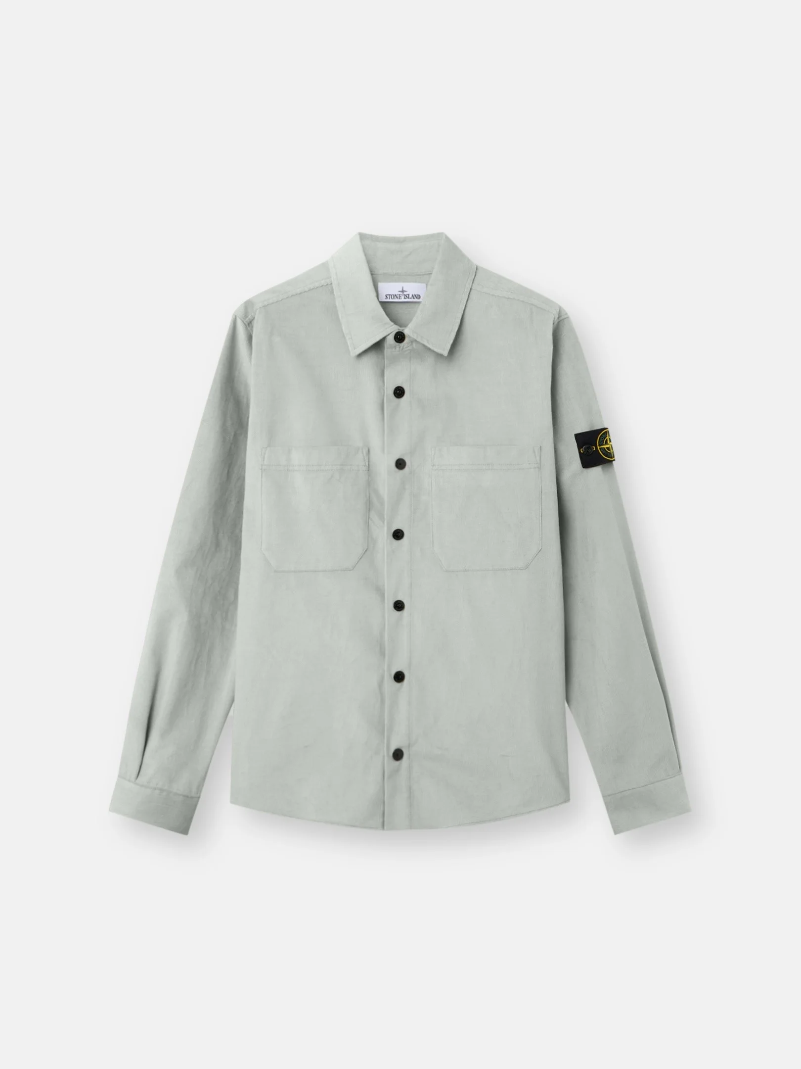 Overshirt in cotton micro-corduroy, featuring chest pockets, snap-fastened cuffs, a back yoke, rounded hem, and snap fastening. FABRIC RESEARCH AND TREATMENT Overshirt in cotton micro-corduroy. STYLE AND FIT Patch chest pockets. Stone Island badge on left sleeve. Snap at cuffs. Back yoke. Rounded hem. Snap fastening. Regular fit. COMPOSITION AND CARE 100% Cotton