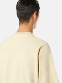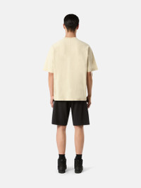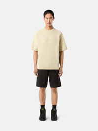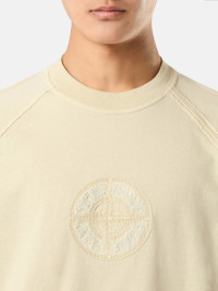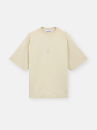 T-shirt in organic cotton jersey featuring raglan sleeves with piping construction and cotton applique, and an embroidered logo on the chest. Garment dyed. FABRIC RESEARCH AND TREATMENT Short-sleeve T-shirt in organic cotton jersey. Garment dyed. STYLE AND FIT Ribbed neckline. Raglan sleeves; the left one with a piping construction and inner mercerized cotton applique, running from the neckline to the sleeve’s edge. Embroidered and stitched applique of the Stone Island Compass in two different fabrics central on chest. Yoke on back. Oversized fit. COMPOSITION AND CARE 100% Cotton - Excluding The Decoration