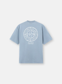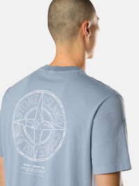 Short-sleeve T-shirt in organic cotton jersey, featuring a logo and text print on the chest and a large Compass motif with aged effect on the back. Garment dyed. FABRIC RESEARCH AND TREATMENT Short-sleeve T-shirt in organic cotton jersey with “Stone” print. Garment dyed. STYLE AND FIT Ribbed neckline. Print on chest with Stone Island logo and text. Large Compass logo print with aged effect and text on back. COMPOSITION AND CARE Garment: 100% Cotton Ribbing: 100% Cotton