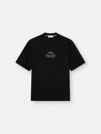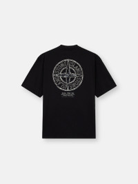 Short-sleeve T-shirt in organic cotton jersey, featuring a logo and text print on the chest and a large Compass motif with aged effect on the back. Garment dyed. FABRIC RESEARCH AND TREATMENT Short-sleeve T-shirt in organic cotton jersey with “Stone” print. Garment dyed. STYLE AND FIT Ribbed neckline. Print on chest with Stone Island logo and text. Large Compass logo print with aged effect and text on back. COMPOSITION AND CARE Garment: 100% Cotton Ribbing: 100% Cotton