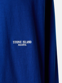 Long-sleeve T-shirt in combed organic cotton jersey featuring Stone Island Marina embroidery at the waist and a ribbed neckline. Garment dyed. FABRIC RESEARCH AND TREATMENT Long-sleeve T-shirt in combed organic cotton jersey. Garment dyed. STYLE AND FIT Ribbed neckline. Embroidery of Stone Island Marina lettering at waist. Oversized fit. COMPOSITION AND CARE Garment: 100% Cotton - Excluding The Decoration. Ribbing: 94% Cotton 6% Elastane / Spandex