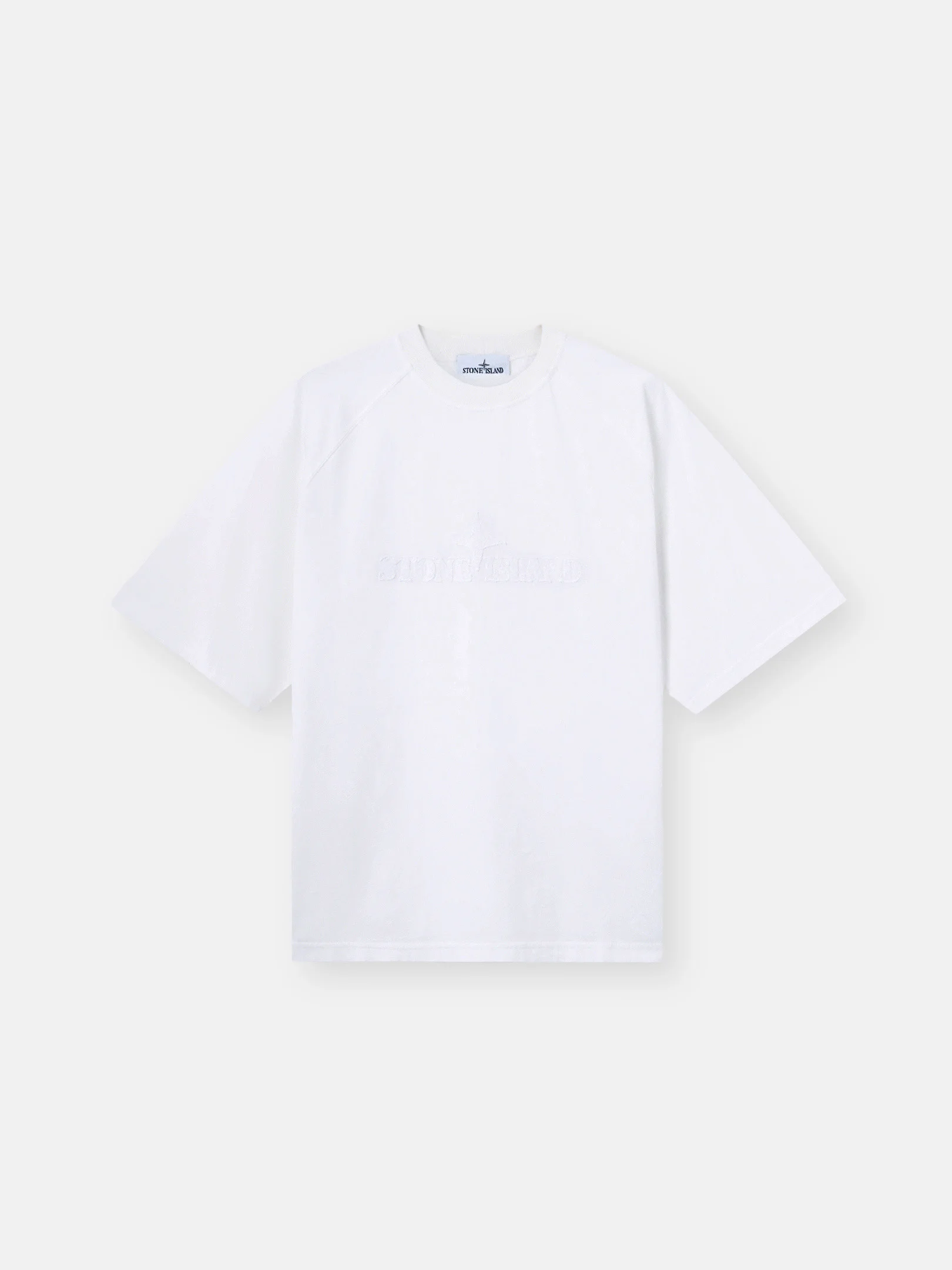 Short-sleeve T-shirt in combed organic cotton jersey featuring raglan sleeves and tonal Stone Island logo embroidery on the chest. Garment dyed. FABRIC RESEARCH AND TREATMENT Short-sleeve T-shirt in combed organic cotton jersey. Garment dyed. STYLE AND FIT Ribbed neckline. Raglan sleeves. Stone Island logo embroidery with same fabric on chest. Oversized fit. COMPOSITION AND CARE Garment: 100% Cotton. Ribbing: 94% Cotton 6% Elastane / Spandex