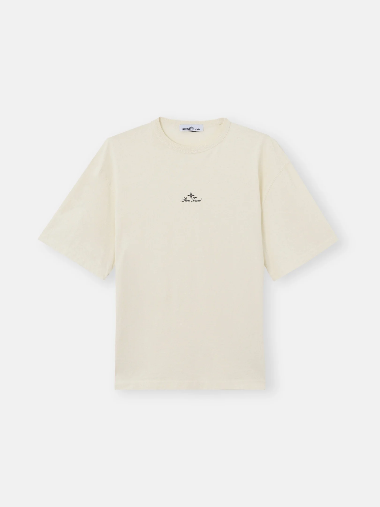 Short-sleeve T-shirt in organic cotton jersey, featuring a ribbed neckline and Stone Island logo script embroidery on the chest. Garment dyed. FABRIC RESEARCH AND TREATMENT Short-sleeve T-shirt in organic cotton jersey. Garment dyed. STYLE AND FIT Ribbed neckline. Stone Island logo script embroidery on chest. Regular fit. COMPOSITION AND CARE Garment: 100% Cotton Ribbing: 100% Cotton