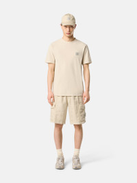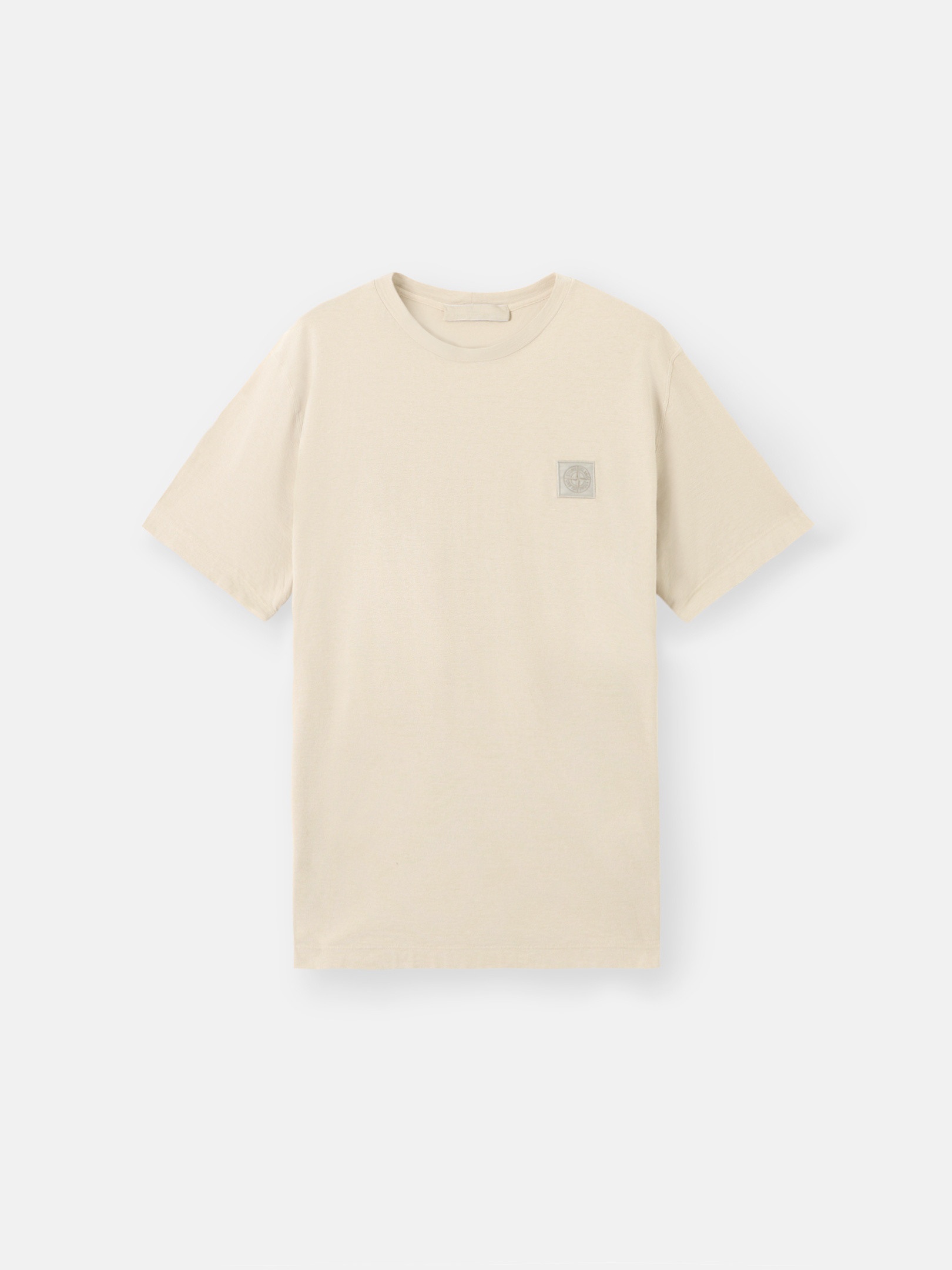 Short-sleeve T-shirt made from crepe cotton jersey, featuring a thinly ribbed neckline and monocolor Compass patch on the chest. Garment dyed. FABRIC RESEARCH AND TREATMENT Ghost pieces, derived from the concept of camouflage, are totally monochromatic. Short-sleeve T-shirt in crepe cotton jersey. Garment dyed. STYLE AND FIT Thinly ribbed neckline. Monocolor Stone Island Compass logo patch on the chest. Slim fit. COMPOSITION AND CARE 100% Cotton