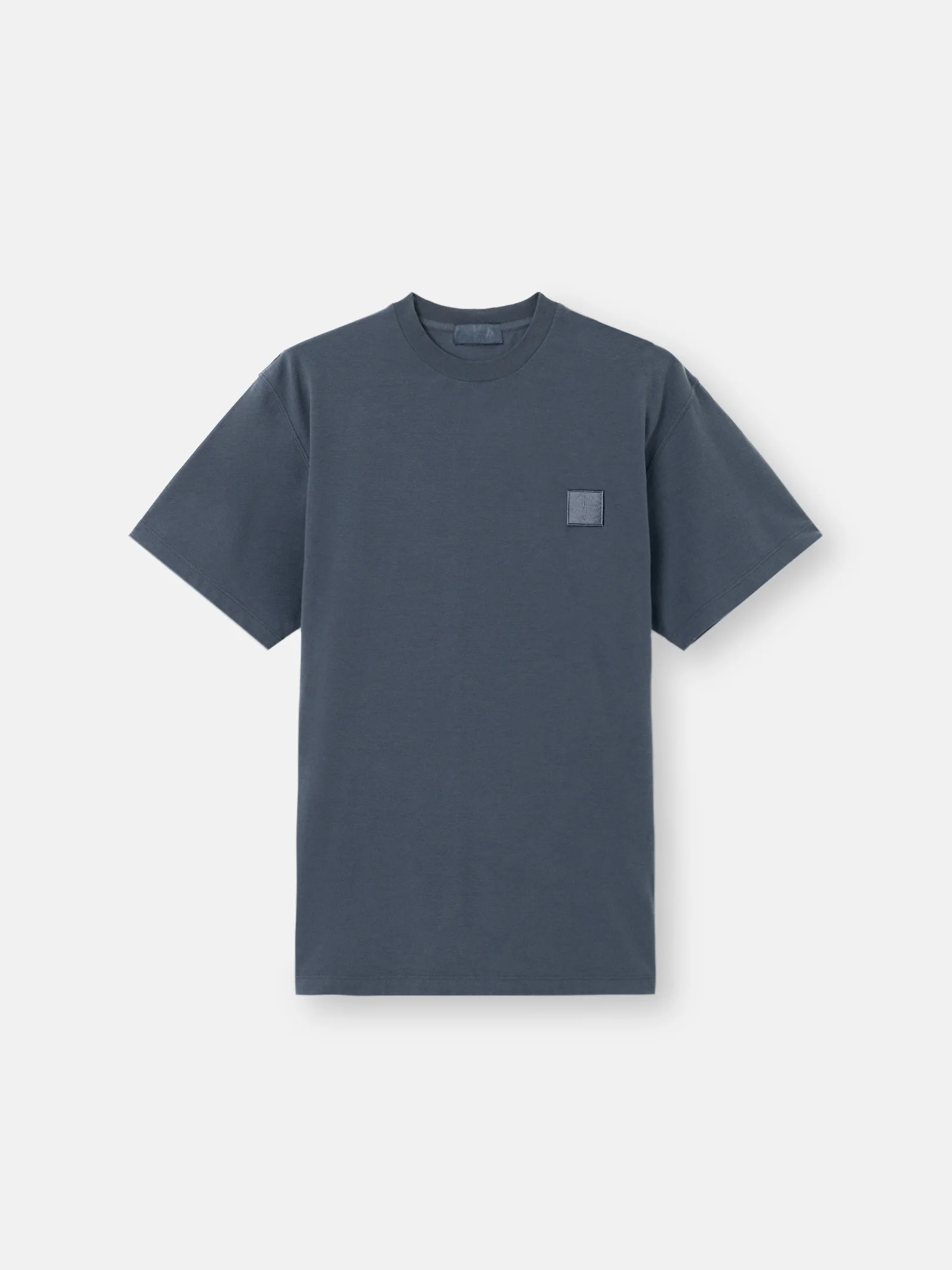 Short-sleeve T-shirt in organic cotton jersey crepe, featuring a tonal Compass patch on the chest. Garment dyed. FABRIC RESEARCH AND TREATMENT Ghost pieces, derived from the concept of camouflage, are totally monochromatic. Even the Stone Island Compass logo patch is created in a special monocolor version to blend in with the garment. Short-sleeve T-shirt in organic cotton jersey crepe. Garment dyed. STYLE AND FIT Ribbed neckline. Tone-on-tone Compass logo patch on chest. Slim fit. COMPOSITION AND CARE 100% Cotton