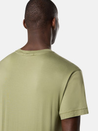 Short-sleeve T-shirt in cotton jersey, featuring a Compass logo patch on the chest and raised stitching at the hem. Garment dyed. FABRIC RESEARCH AND TREATMENT Short-sleeve T-shirt in cotton jersey. Garment dyed. STYLE AND FIT Ribbed neckline. Stone Island Compass logo patch on chest. Raised stitching along bottom hem. Slim fit. COMPOSITION AND CARE Garment: 100% Cotton. Ribbing: 100% Cotton