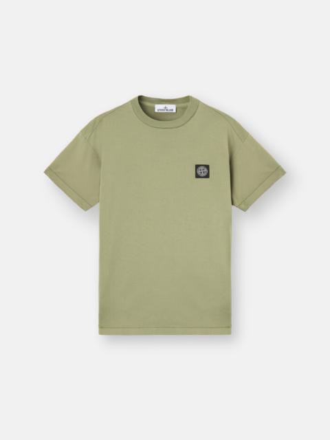 Short-sleeve T-shirt in cotton jersey, featuring a Compass logo patch on the chest and raised stitching at the hem. Garment dyed. FABRIC RESEARCH AND TREATMENT Short-sleeve T-shirt in cotton jersey. Garment dyed. STYLE AND FIT Ribbed neckline. Stone Island Compass logo patch on chest. Raised stitching along bottom hem. Slim fit. COMPOSITION AND CARE Garment: 100% Cotton. Ribbing: 100% Cotton